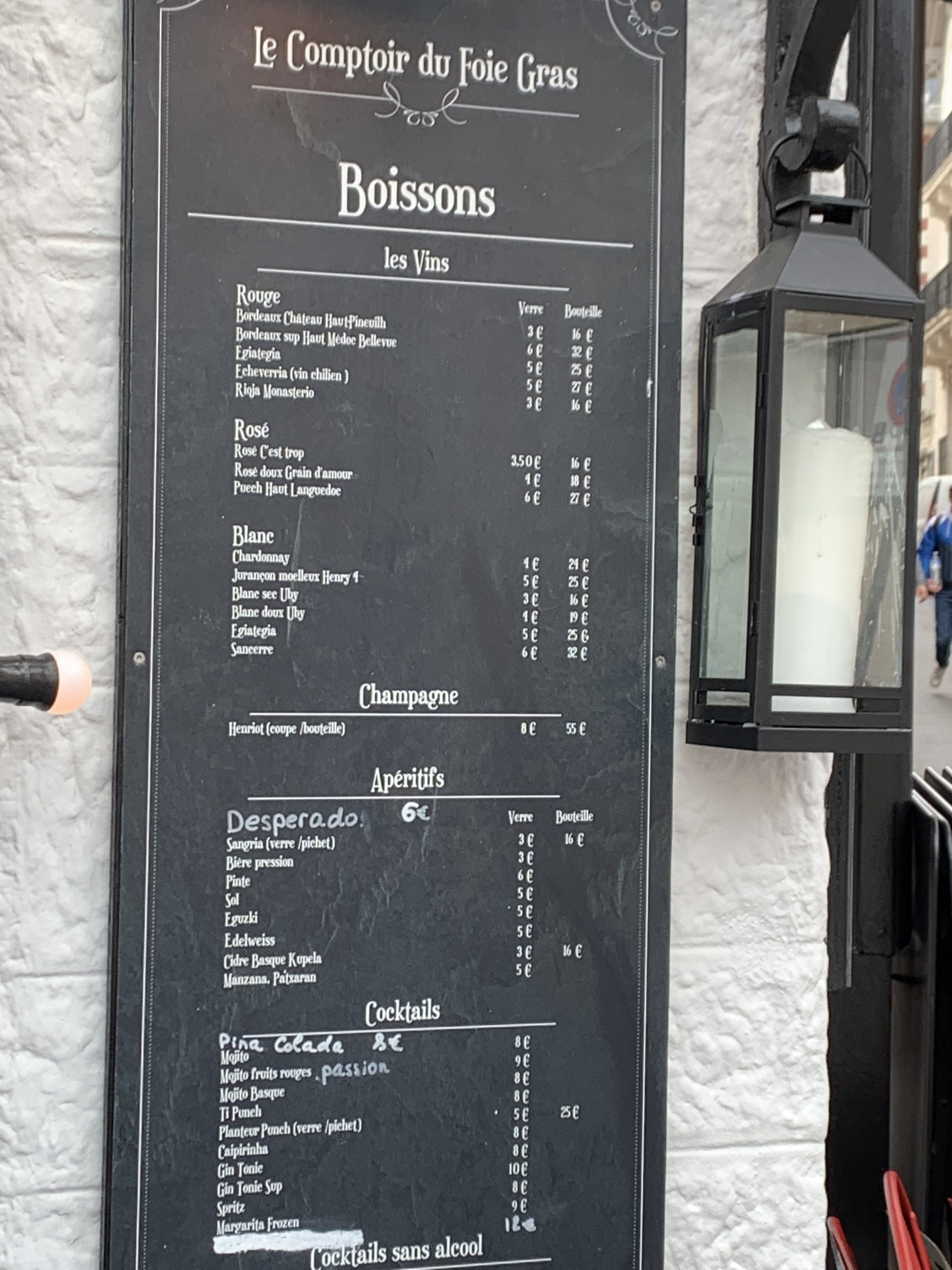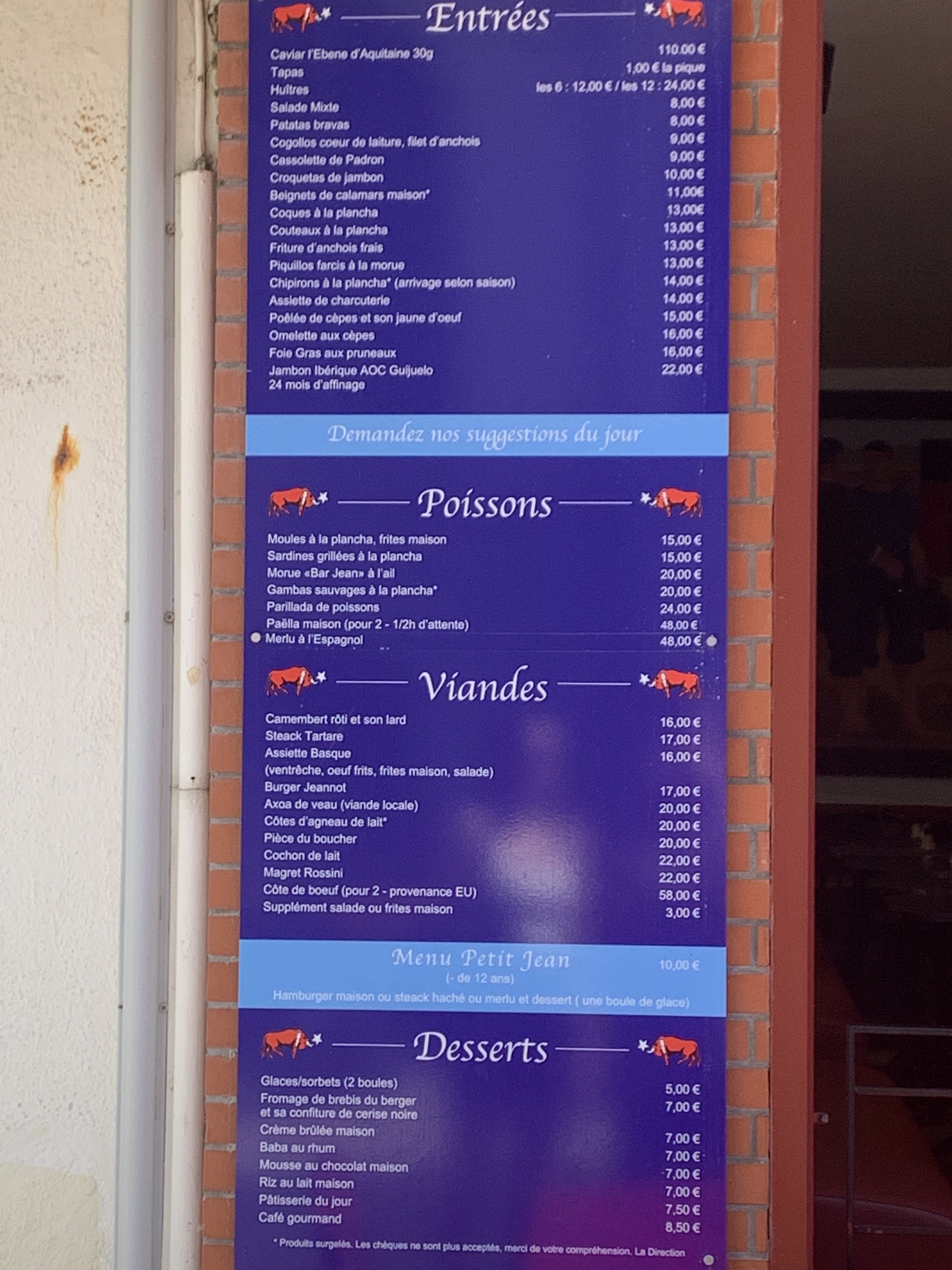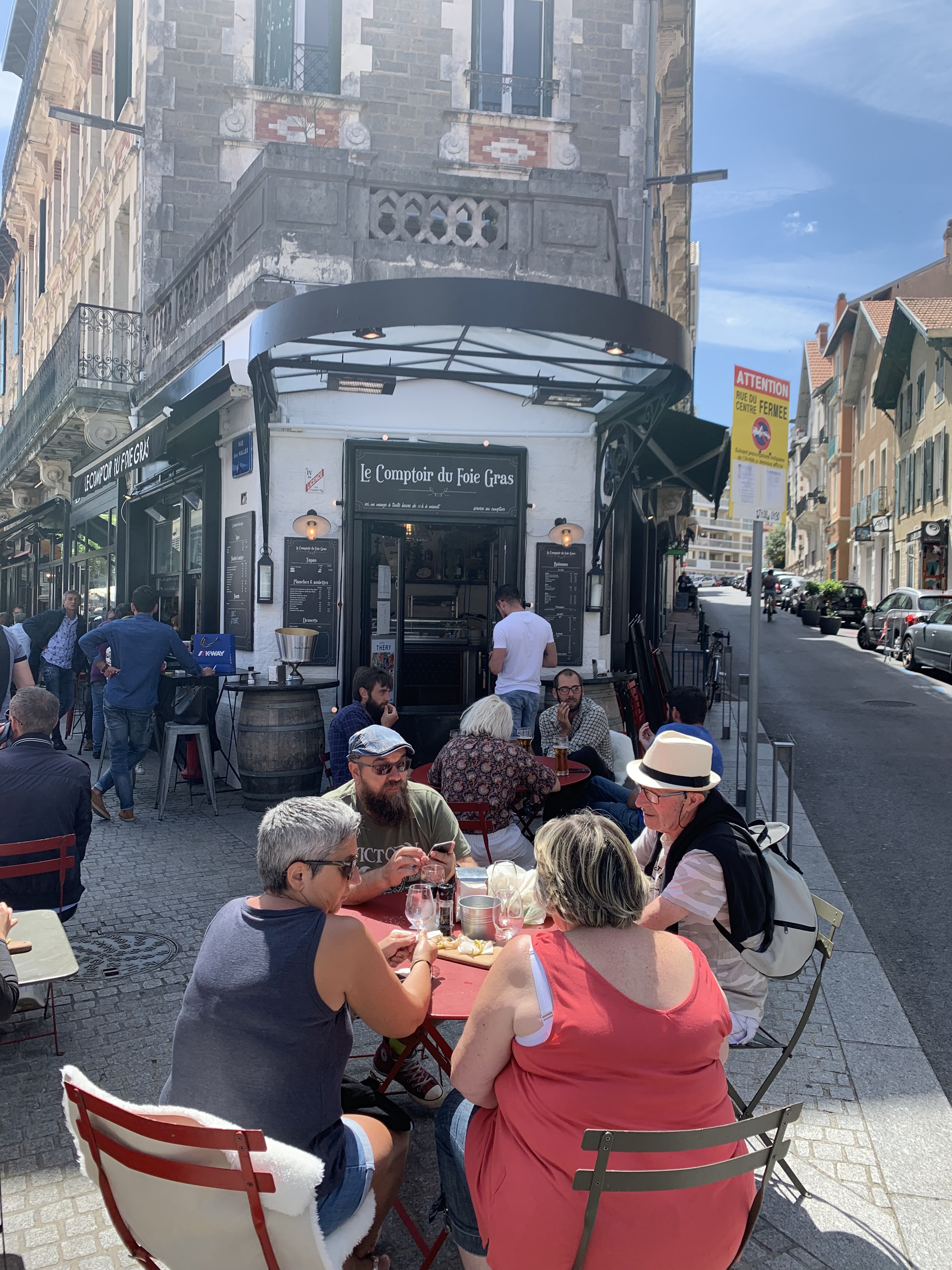 Aussi nous avons décidé d’aller où il y a beaucoup de restaurants pour interviewer quelqu’un par la cuisine Basque. Par chance nous avons vu le propriétaire du restaurant “Le bistrot de la Mer”. Nous lui avons demandé et il nous a parlé de la cuisine nationale de Biarritz. 🗣