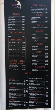 3. En face du marché des Halles il y a un restaurant qui s`appelle “Chistera”. Voici le menu: